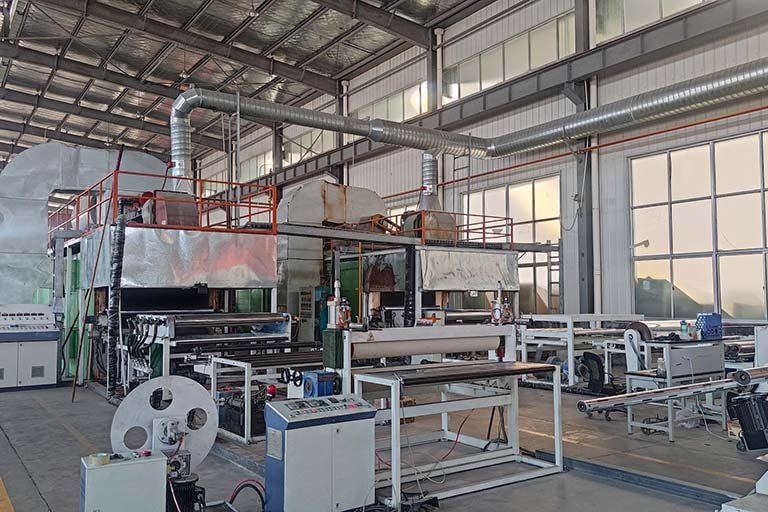 The mixed materials are added to the twin-screw extruder for heating and extrusion. The extruded sheet is passed through a four-roll calender to determine the thickness.